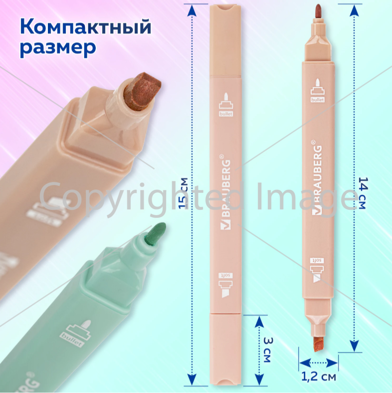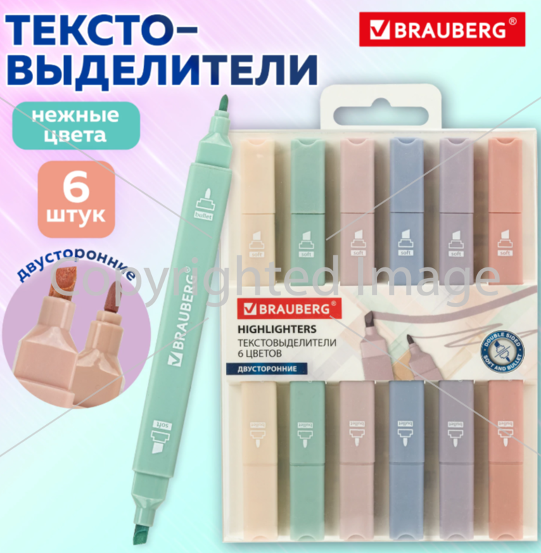 Набор текстовыделителей двусторонних BRAUBERG "Morandi", 6шт., 1-5 мм