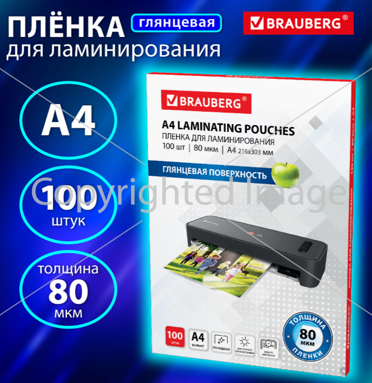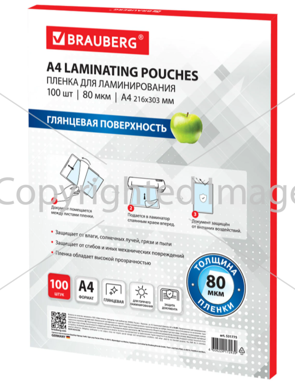 Пленка для ламинирования А4, 80мкм, глянец, 100л/уп.