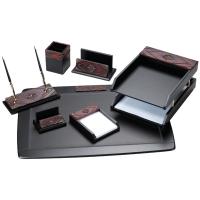 Настольный набор Delucci 7 предметов, черный, красное дерево/декоративный камень