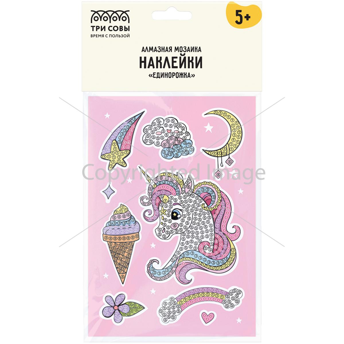 Алмазная мозаика, наклейки ТРИ СОВЫ, пакет с европодвесом, в ассортименте