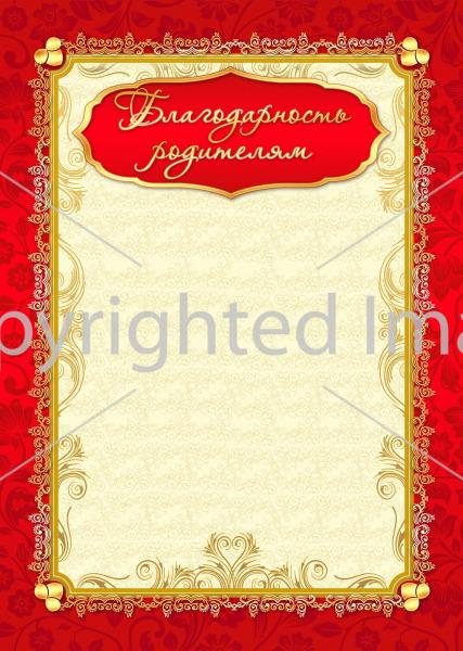 Благодарность родителям 976 (бежевый фон, золотисто-красная рамка)
