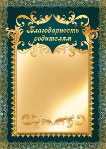 Благодарность родителям 977 (золотисто-бежевый фон, зеленая рамка)