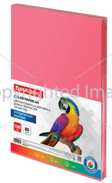 Бумага цветная А4 BRAUBERG, 80г/м2, 100л., интенсив, красная