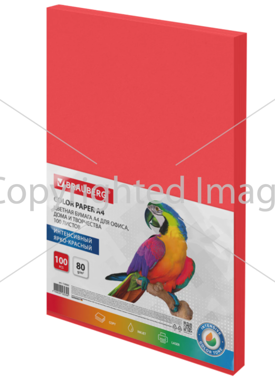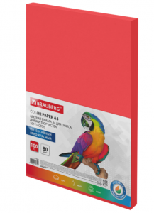 Бумага цветная А4 BRAUBERG, 80г/м2, 100л., интенсив, ЯРКО-красная