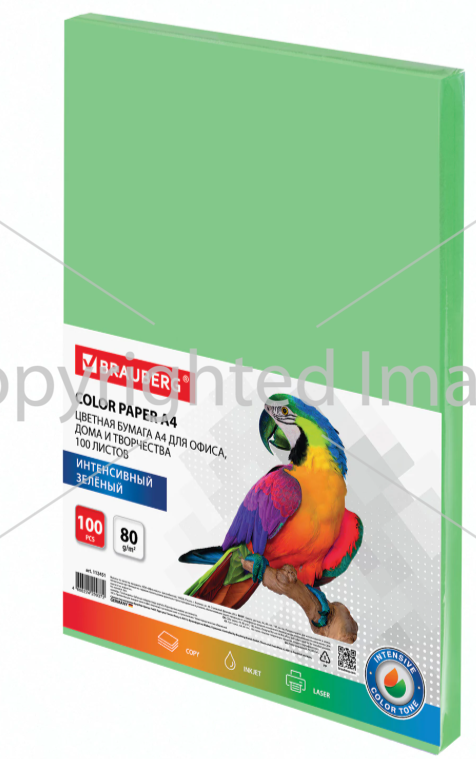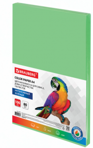 Бумага цветная А4 BRAUBERG, 80г/м2, 100л., интенсив, зеленая