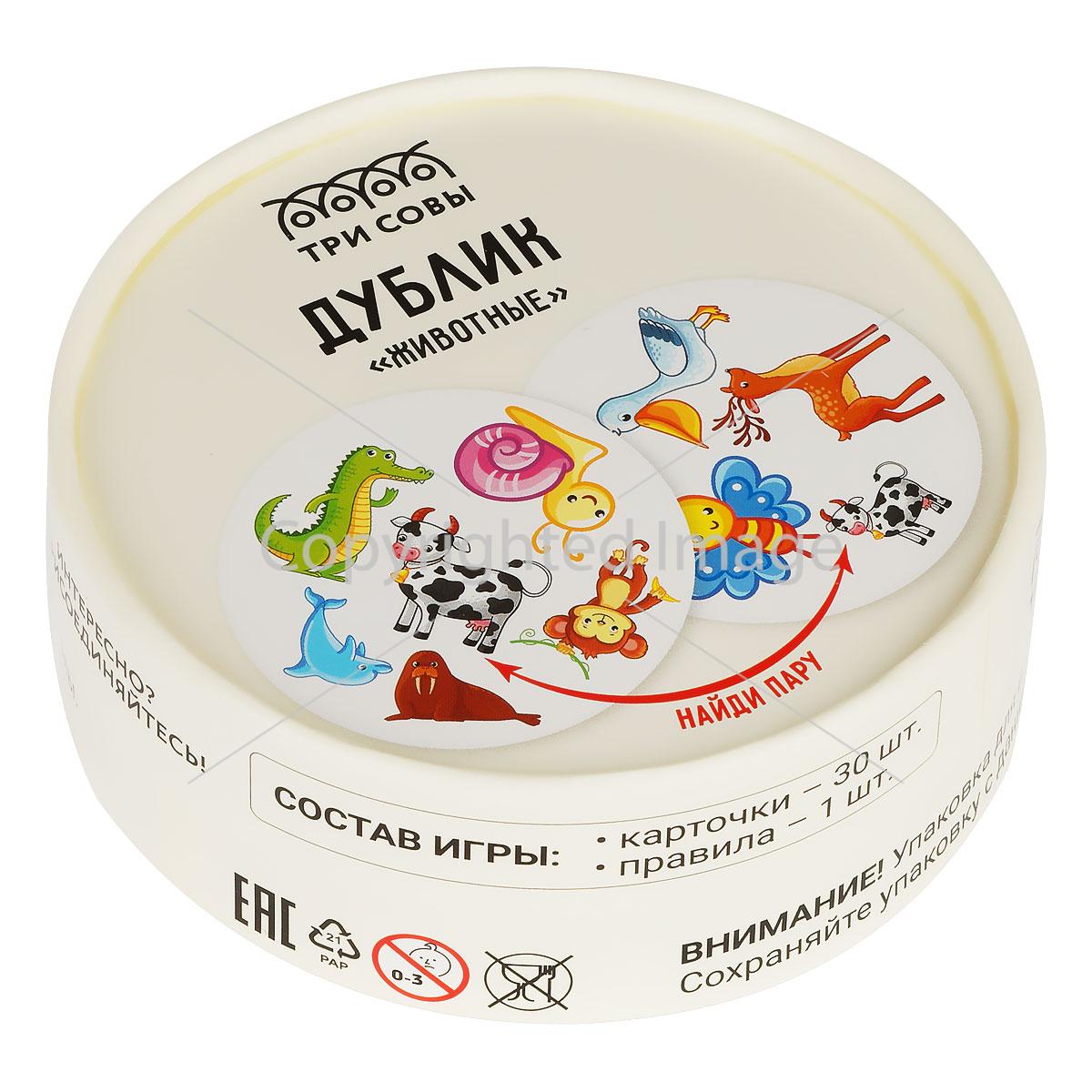Игра настольная ТРИ СОВЫ "Дублик. Животные", 30 карточек, картонная коробка