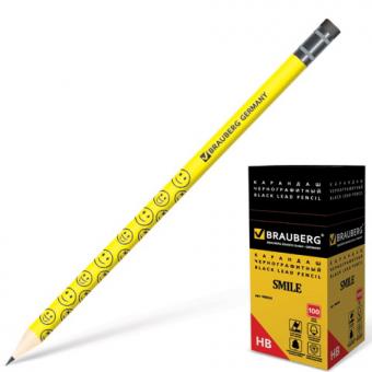 Карандаш ч/г Brauberg "Smile" цвет корпуса желтый, HB, с ластиком, заточенный