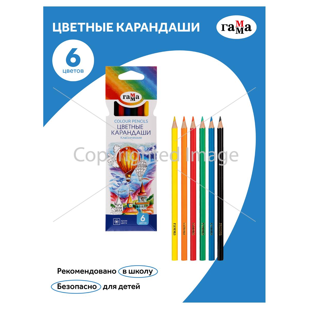 Карандаши цветные Гамма "Классические" набор 06цв., заточенные