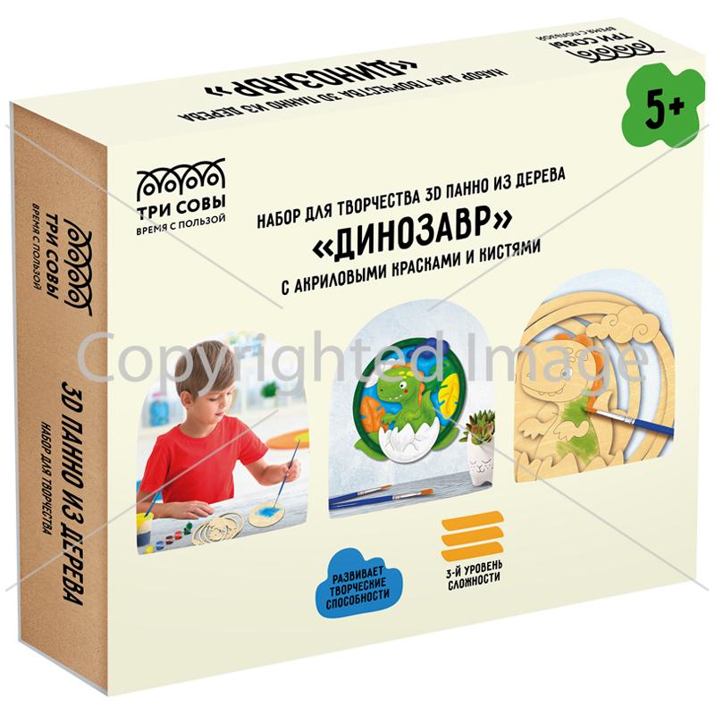 Набор для творчества 3D панно из дерева ТРИ СОВЫ, с акрил. красками и кистями, в ассортименте