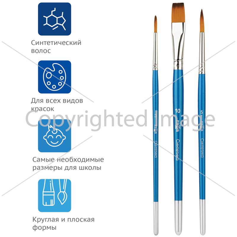 Набор кистей Гамма СИНТЕТИКА "Классические", 3шт (круглые № 3, 5, плоская № 10), блистер