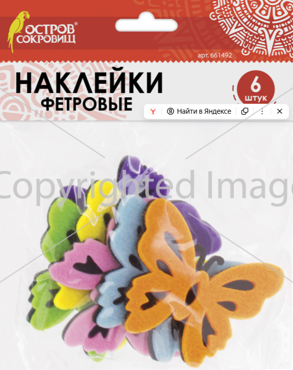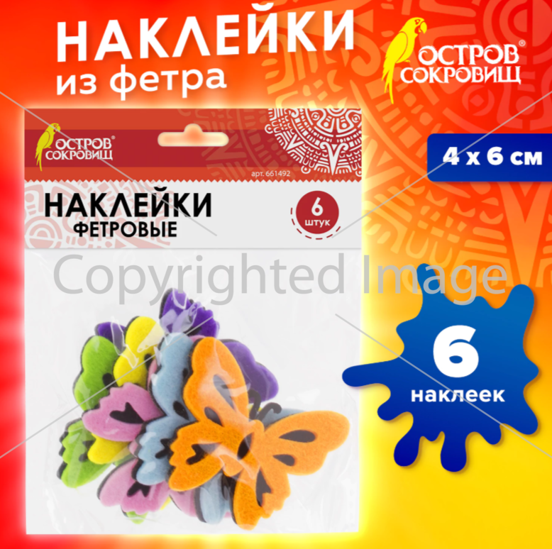 Наклейки из фетра ОСТРОВ СОКРОВИЩ "Бабочки", двухцветные, 6шт., ассорти