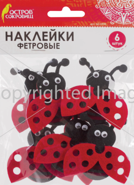 Наклейки из фетра ОСТРОВ СОКРОВИЩ "Божьи коровки", 6шт., ассорти