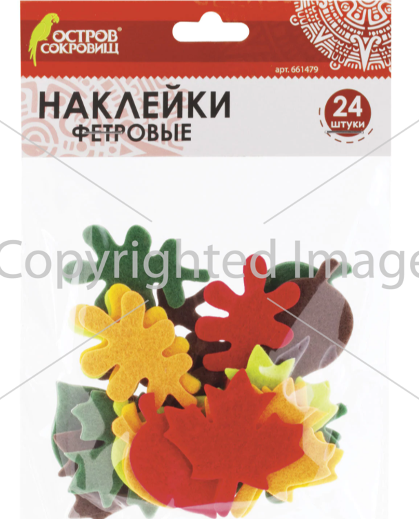 Наклейки из фетра ОСТРОВ СОКРОВИЩ "Листья", 24шт., ассорти