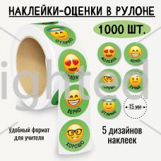 Наклейки-оценки в рулоне, 1000шт., в ассортименте