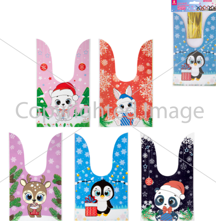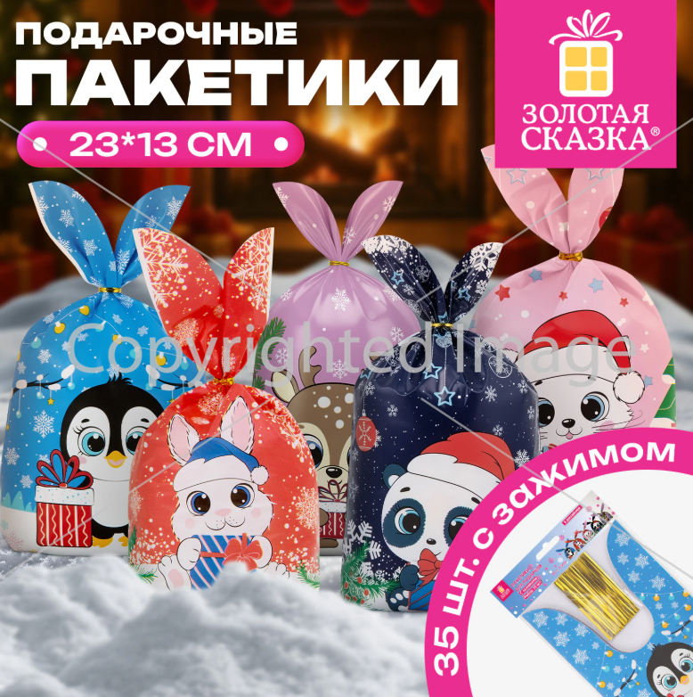 Пакетик подарочный ЗОЛОТАЯ СКАЗКА "Новогодний" (13,8х23см), с зажимами, в ассортименте