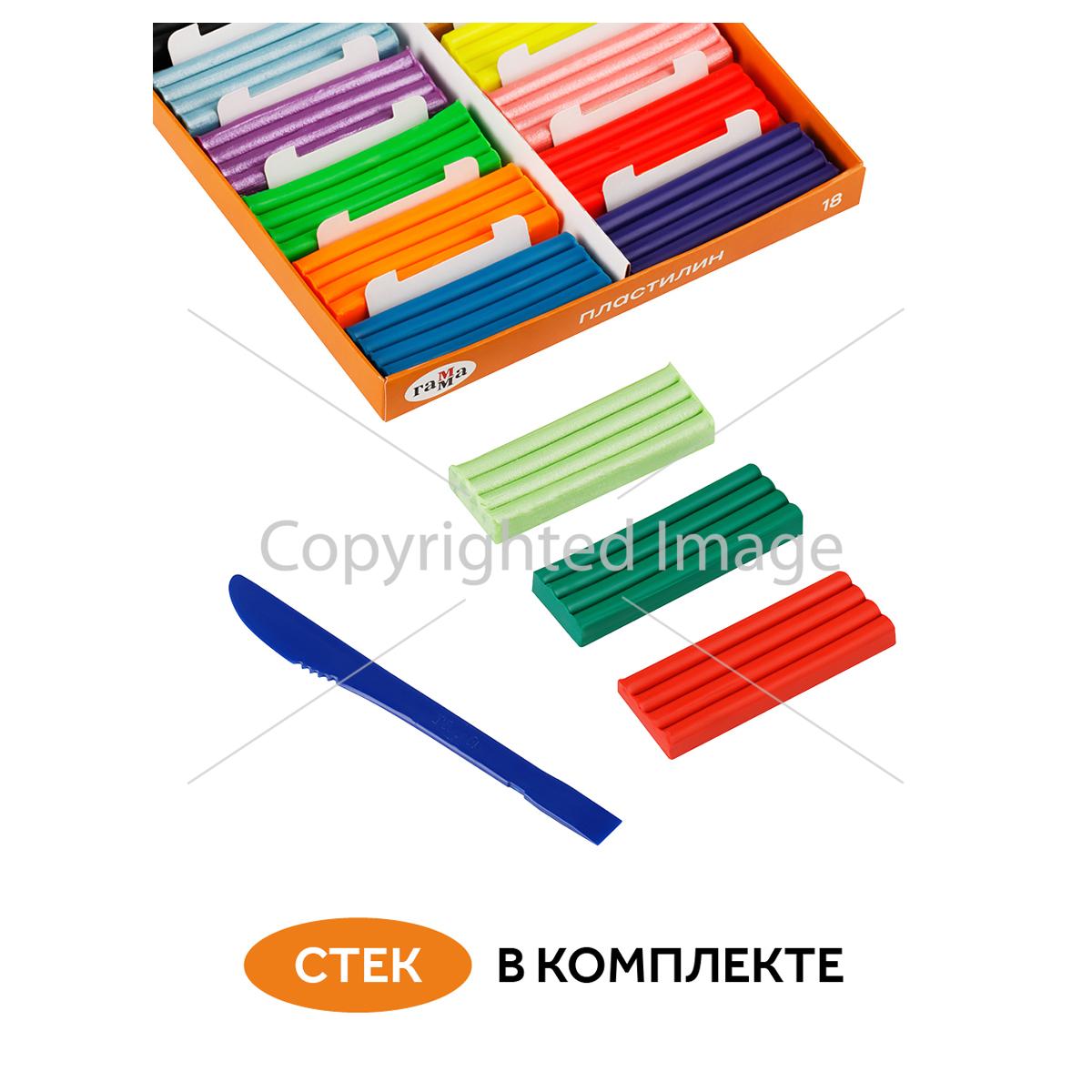 Пластилин ГАММА "Оранжевое солнце", 18цв. (6 классич., 6 флуор., 6 перл.), 234гр., со стеком