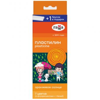 Пластилин ГАММА "Оранжевое солнце", 7цв. (6 флуор. + 1 белый), 93гр., со стеком