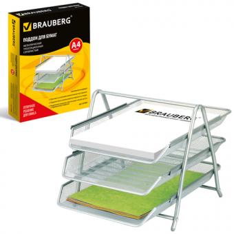 Поддон горизон. метал. для бумаг 3 секции BRAUBERG "Germanium" А4 (267х355х295мм), серебро