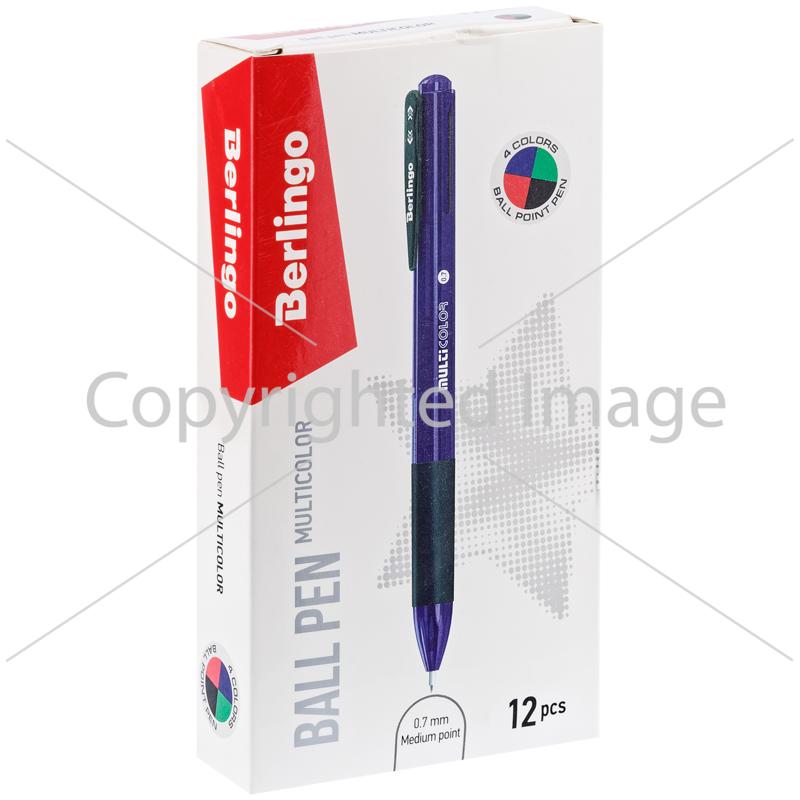 Ручка шарик. автом. Berlingo "Multicolor" 4-х цветная, 0,7мм, синяя, цветной корпус