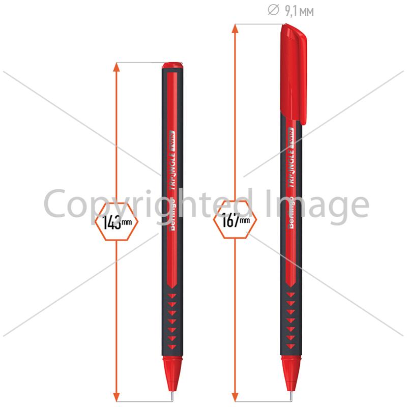 Ручка шарик. Berlingo "Triangle Twin" красная, 0,7мм, игольчатый стержень
