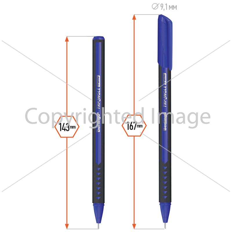 Ручка шарик. Berlingo "Triangle Twin" синяя, 0,7мм, игольчатый стержень