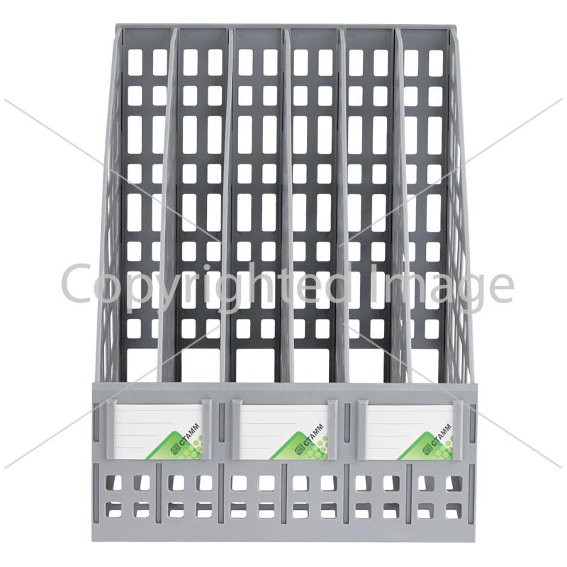 Стойка для бумаг вертикальная BRAUBERG/СТАММ (ЛТВ-63725/ЛТ86), 6 отделений, серая