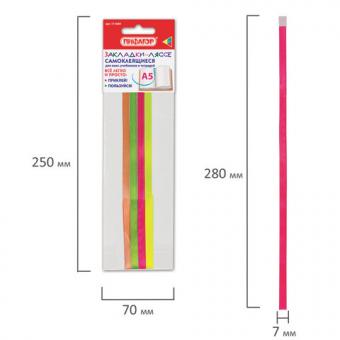 Закладки-ляссе А5 (длина 28см) ПИФАГОР, клейкий край, 4 ленты, в ассортименте