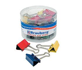 Зажимы для бумаг Brauberg, цветные, 41мм, 24шт., в пластиковом цилиндре
